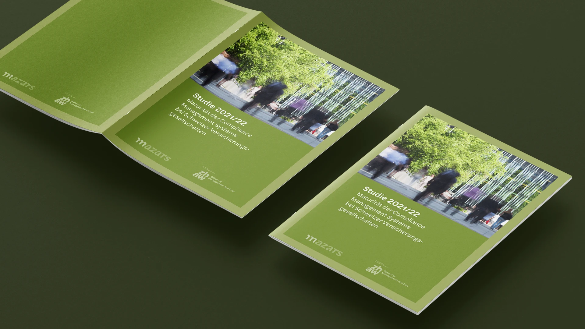 Forvis Mazars publizierte gemeinsam mit der ZHAW eine umfassende Studie zur Compliance-Reife. Agentur Schmucki übernahm die Gestaltung der 40-seitigen Broschüre und der Präsentation mit strukturierten Grafiken, klarem Layout und hoher Informationsdichte.