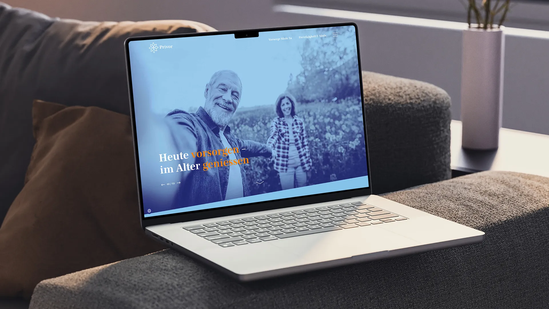 Privor ist eine unabhängige Vorsorgestiftung mit über 30 Jahren Erfahrung. Sie ermöglicht ihren Kundinnen und Kunden den Aufbau einer privaten Vorsorge mit Weitsicht. Ziel des Website-Relaunchs war es, ein junges, regionales Publikum anzusprechen – sicherheitsbewusst und gleichzeitig flexibel.